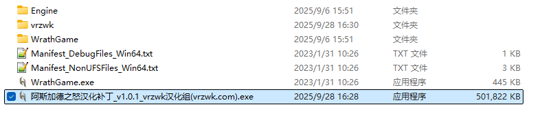 应该和存档无关,汉化只支持1.6版本的游戏,检查一下你的游戏版本呢,或者你用的是其他网站下载的特殊修改加固的游戏导致不知道汉化补丁,你可以直接使用文章里提供的游戏本体,另外存档位置在“C:\Users\你的用户名\AppData\Local\WrathGame\Saved\SaveGames”
